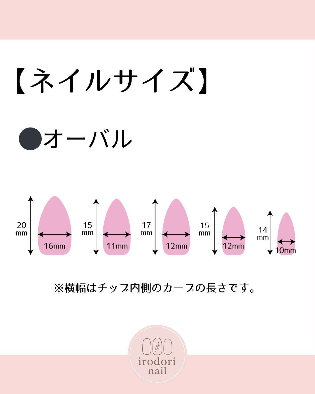 ※こちらの商品は完成品の販売です。サイズ変更などは受け付けておりませんのでご了承ください。ご自身のネイルのサイズをご確認いただき、商品のサイズが合うかご確認の上お買い求めください。