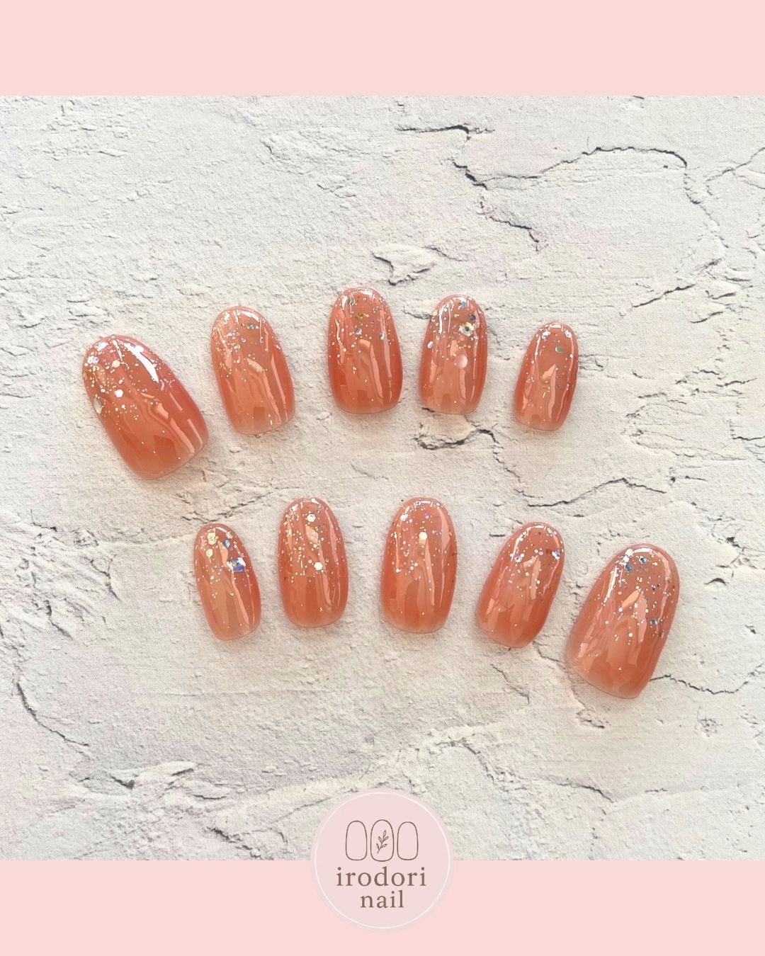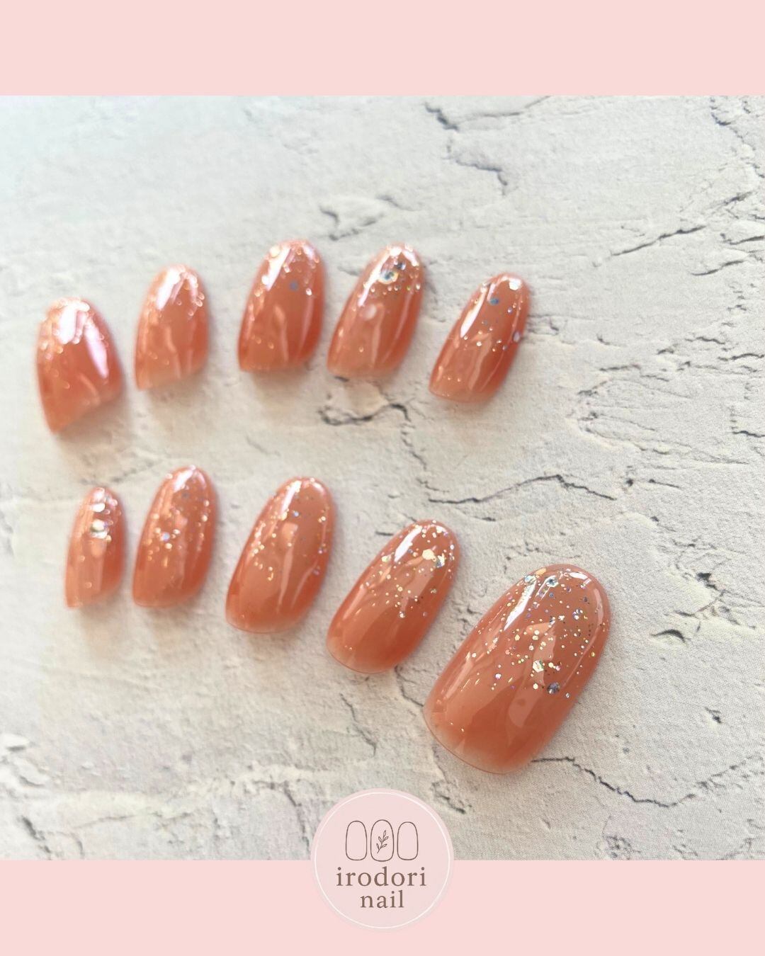 【irodori nail・アウトレット】アプリコット ラメ キラキラ シンプル ネイルチップ ショートオーバル