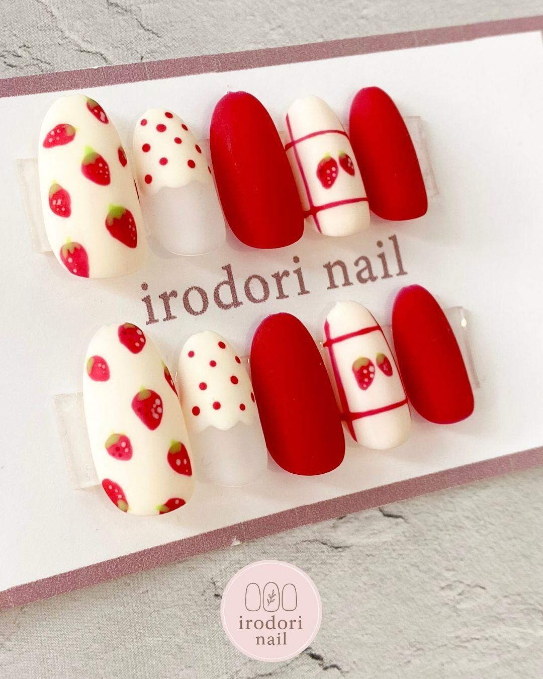 【irodori nail】小さめサイズ 苺 バレンタインネイル|いちご チョコレート ネイルチップ ストロベリー ホワイトチョコ レッド ガーリー 可愛い 大人可愛い バレンタイン