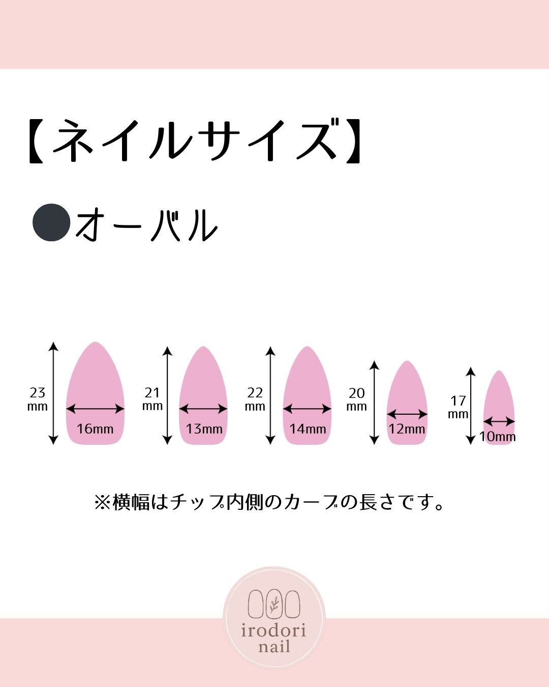 ※こちらの商品は完成品の販売です。サイズ変更などは受け付けておりませんのでご了承ください。ご自身のネイルのサイズをご確認いただき、商品のサイズが合うかご確認の上お買い求めください。