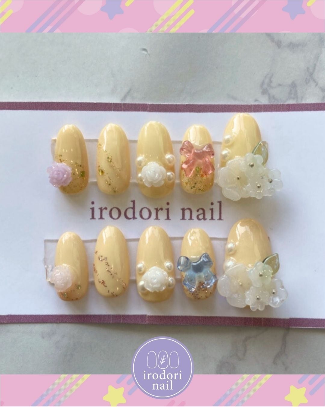 【irodori nail】イエローネイル フラワーネイル 立体フラワー リボンネイル パールネイル 春ネイル ふんわりネイル 大人可愛い ガーリーネイル ハンドメイドネイル ネイルチップ irodorinail