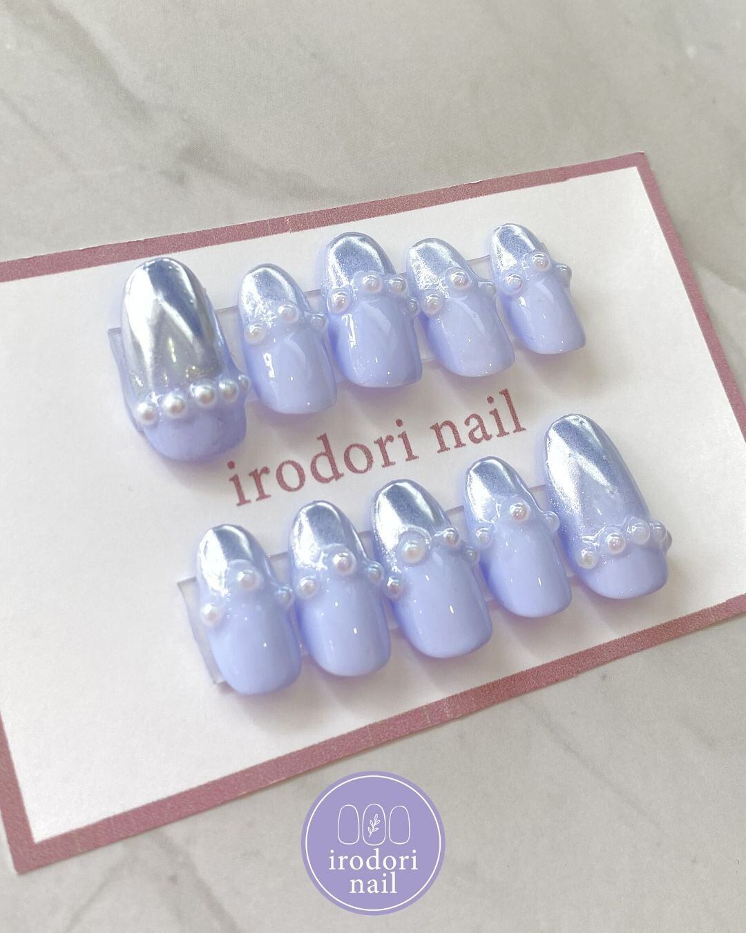 【irodori nail】アイスブルーネイル ラベンダー ミラーネイル キッズネイル 小さめネイル パールネイル ハンドメイドネイル ネイルチップ