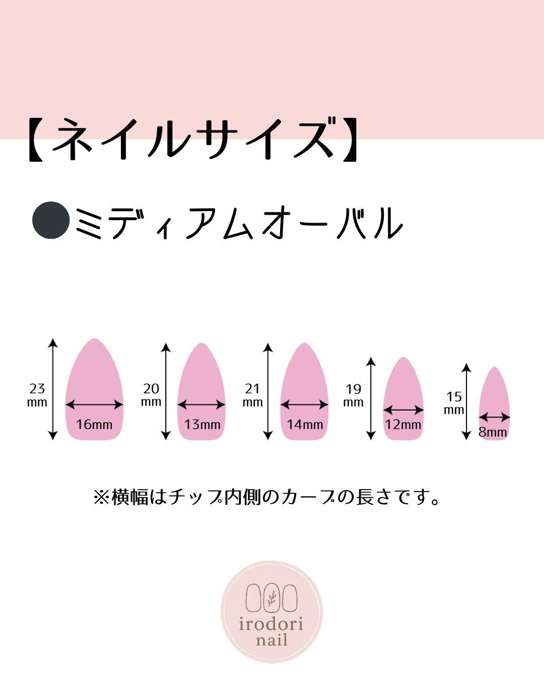 ※こちらの商品は完成品の販売です。サイズ変更などは受け付けておりませんのでご了承ください。ご自身のネイルのサイズをご確認いただき、商品のサイズが合うかご確認の上お買い求めください。