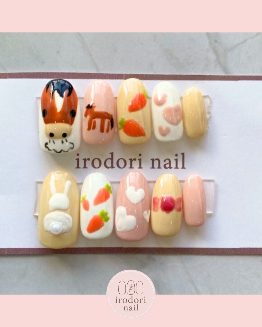 【irodori nail】馬うさぎネイル にんじんネイル ほっこりアニマルネイル 3Dネイル 絵本風ネイル パステルカラー ぷっくりアート ゆるかわネイル 干支ネイル 個性派ネイル ニュアンスネイル